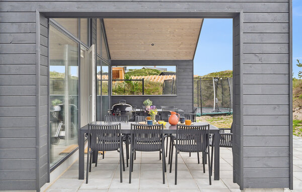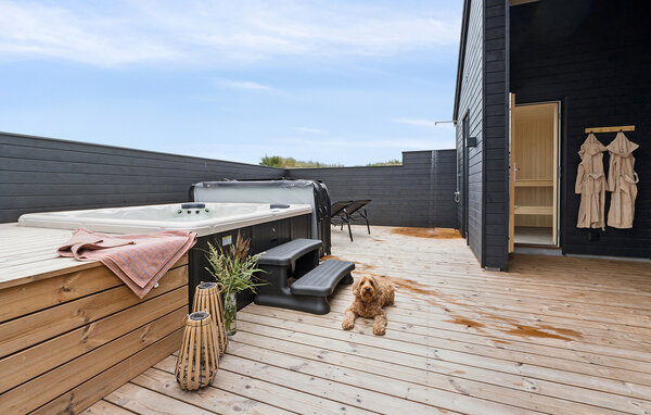 Entspannen Sie im geschützten Außenbereich mit mehreren Sitzgruppen und Sonnenliegen. Nutzen Sie den Whirlpool unter freiem Himmel oder genießen Sie ein Abendessen an der frischen Luft im überdachten Terrassenbereich. Kinder freuen sich über das Trampolin, die Schaukel und viel Platz zum Spielen und Toben, während Sie den Blick auf die umliegenden Dünen genießen.