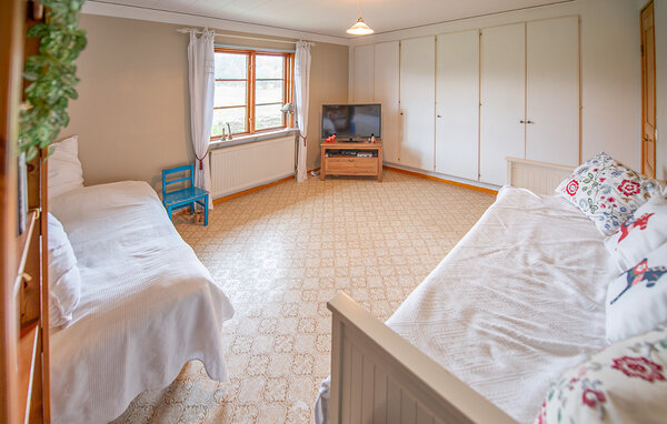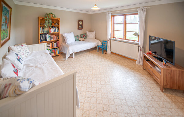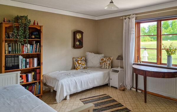 Dieses helle und mit viel Liebe zum Detail eingerichtete Ferienhaus begrüßt Sie mit echter Wohlfühlatmosphäre. Kochen Sie gemeinsam in der geräumigen, gut ausgestatteten Küche und speisen Sie mit Blick in die Naturlandschaft – vielleicht schauen hier Kraniche, Hasen, Füchse oder Hirsche vorbei. Entfachen Sie den Kaminofen, nehmen Sie auf dem Sofa Platz und genießen Sie die Aussicht auf den Gårdsjön und den kleinen Badeteich,