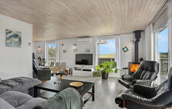 In der äußeren Dünenreihe liegt dieses schöne, renovierte Ferienhaus auf einem hügeligen Dünengrund. Vom Wohnraum haben Sie einen schönen Blick auf die Dünen. Schöne, von Wind geschützte Terrassen. Im Haus gibt es einen Aktivitätsraum mit Unterhaltung für jedes Alter. Zwei Wärmepumpen im Haus sorgen dafür, dass der Aktivitätsraum und das Haus unweltbewusst beheizt werden. Das Grundstück ist hügelig und Sie blicken von hier auf den Kattegat. Von diesem Ferienhaus ist es nicht weit zu Aktivitäten wie Golf, Reiten und Tennis. Nur 12 km entfernt liegt Sæby, eine beschauliche, alte Stadt. Wenn Sie sich entscheiden, Ihren Urlaub in diesem Ferienhaus zu verbringen, sollten Sie auch die Wanderdüne Råbjerg Mile besuchen.