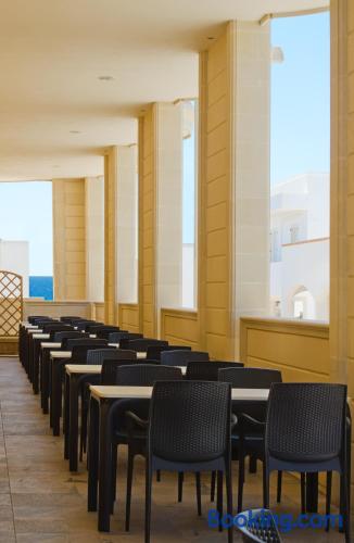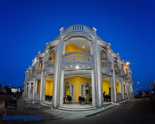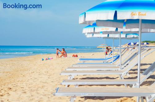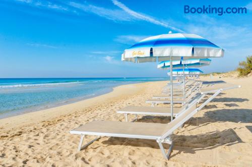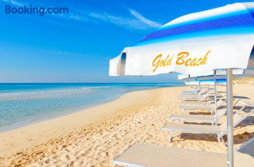 Featuring free Wi-Fi access throughout, Hotel Salento Gold Beach offers rooms in Marina di Pescoluse, just 656 feet from the stunning beachfront. Some rooms have sea and garden views. With a balcony, each room is equipped with air conditioning and a flat-screen TV. The private bathroom comes with a shower, bidet and hairdryer. A characteristic Italian breakfast is served daily in the breakfast room, including freshly brewed coffee or cappuccino and sweet pastries. A savory option is available upon request. The à la carte restaurant serves regional specialties and Italian classics. Santa Maria di Leuca is a 15-minute drive from Gold Beach Hotel Salento, while Torre Mozza is 5.6 mi away.