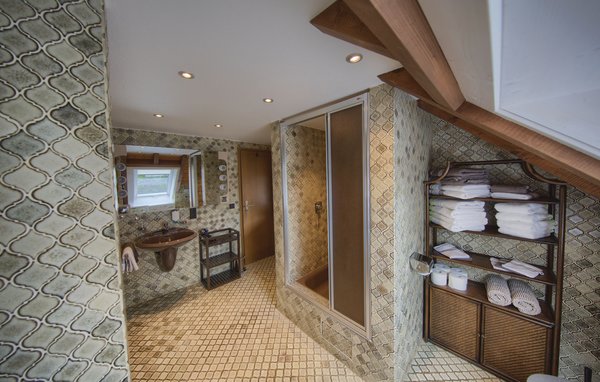 Das große Bad mit WC verfügt über eine separate Dusche und Badewanne, sowie Waschbecken und reichlich Platz. Zusätzlich finden Sie ein separates WC mit Waschbecken vor.
