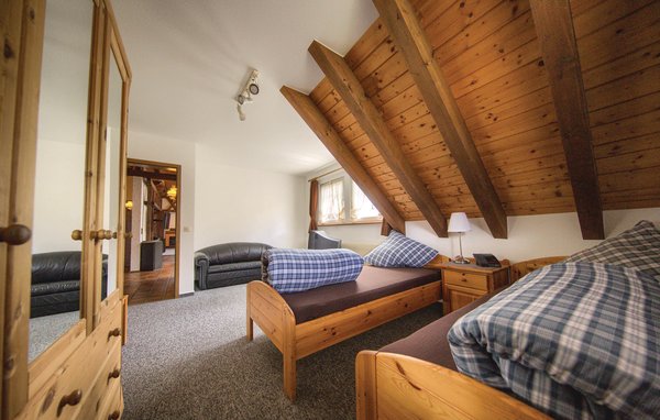 Die beiden großen, komplett möblierten Balkone erlauben einen herrlichen Blick über Schonach und auf die Ortsmitte.Auf 105 m² ist genügend Platz, um einen entspannten Urlaub zu zweit oder mit der ganzen Familie zu verbringen. Die im Fachwerkstil ausgebaute Wohnung verfügt über ein Schlafzimmer mit Doppelbett und einem Schlafzimmer mit zwei Einzelbetten, Schlafsofa und Fernseher. Zusätzlich stehen Kinderbett und Hochstuhl bereit.