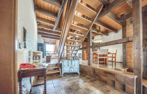 Ein separater Lesebereich lädt am urigen Kachelofen zur Ruhe ein. Auf der Galerie, die über eine Treppe erreichbar ist, können ein Massagesessel, Spielsachen für Kinder und Darts genutzt werden.