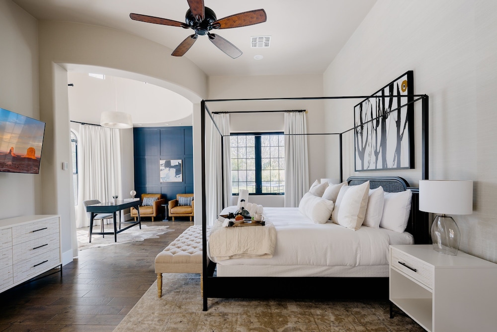 Dieses Ferienhaus in Scottsdale ist nur eine 4-minütige Fahrt von Scottsdale Fashion Square und 7 Minuten von Talking Stick Resort Casino entfernt. Dieses Ferienhaus ist 12,8 km von Arizona State University und 17,9 km von Mayo Clinic Hospital entfernt. Für einen unvergesslichen Aufenthalt verfügt dieses Ferienhaus über einen Kamin. Die Küche verfügt über einen Kühlschrank, einen Ofen und eine Herdplatte. Der Kabelempfang ermöglicht dir gemütliche Fernsehabende. Vor Ort findest du jeglichen Komfort, darunter eine Mikrowelle und einen Trockner. Zimmerreinigung steht nur an bestimmten Tagen zur Verfügung. Entfernungen werden bis auf 0,1 Kilometer gerundet.