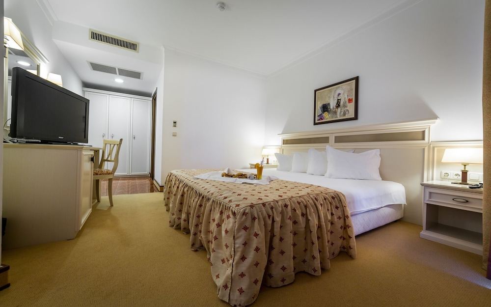 Helena Sands Hotel in Nessebar liegt am Meer, nur einen 3-minütigen Fußmarsch von Sonnenstrand und 15 Gehminuten von Platinum Casino entfernt. Dieses Hotel in Strandnähe ist 2,5 km von Action Aqua Park (Wasserpark) und 3,1 km von Casino Hrizantema entfernt. Fühl dich in einem der 170 klimatisierten Zimmer mit Minibar und LCD-Fernseher wie zu Hause. Die Zimmer haben eigene Balkone. Ein WLAN-Internetzugang (kostenlos) ist ebenso verfügbar wie Satellitenempfang. Die Badezimmer bieten Badewannen, kostenlose Toilettenartikel und Haartrockner. Entfernungen werden bis auf 0,1 Kilometer gerundet.