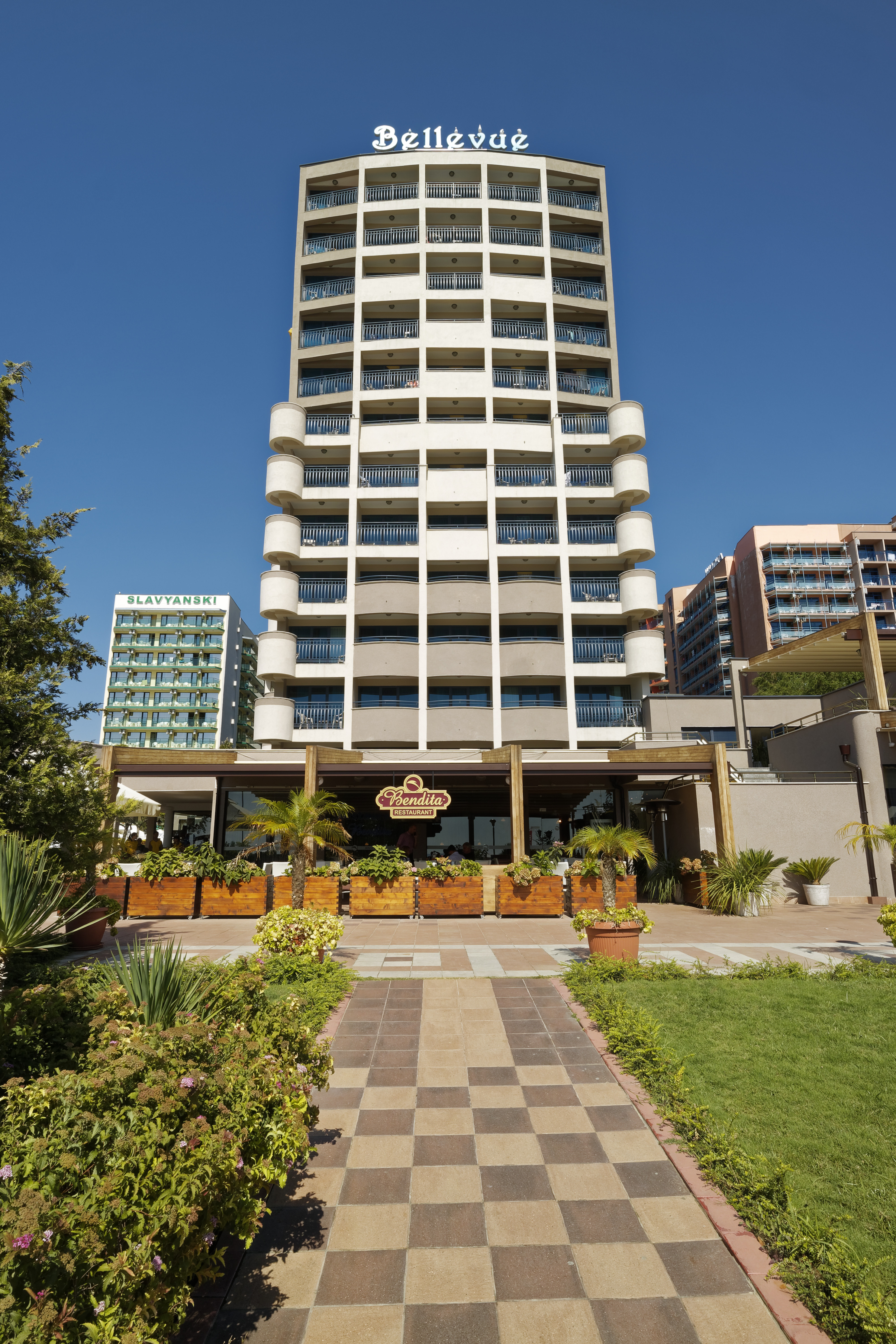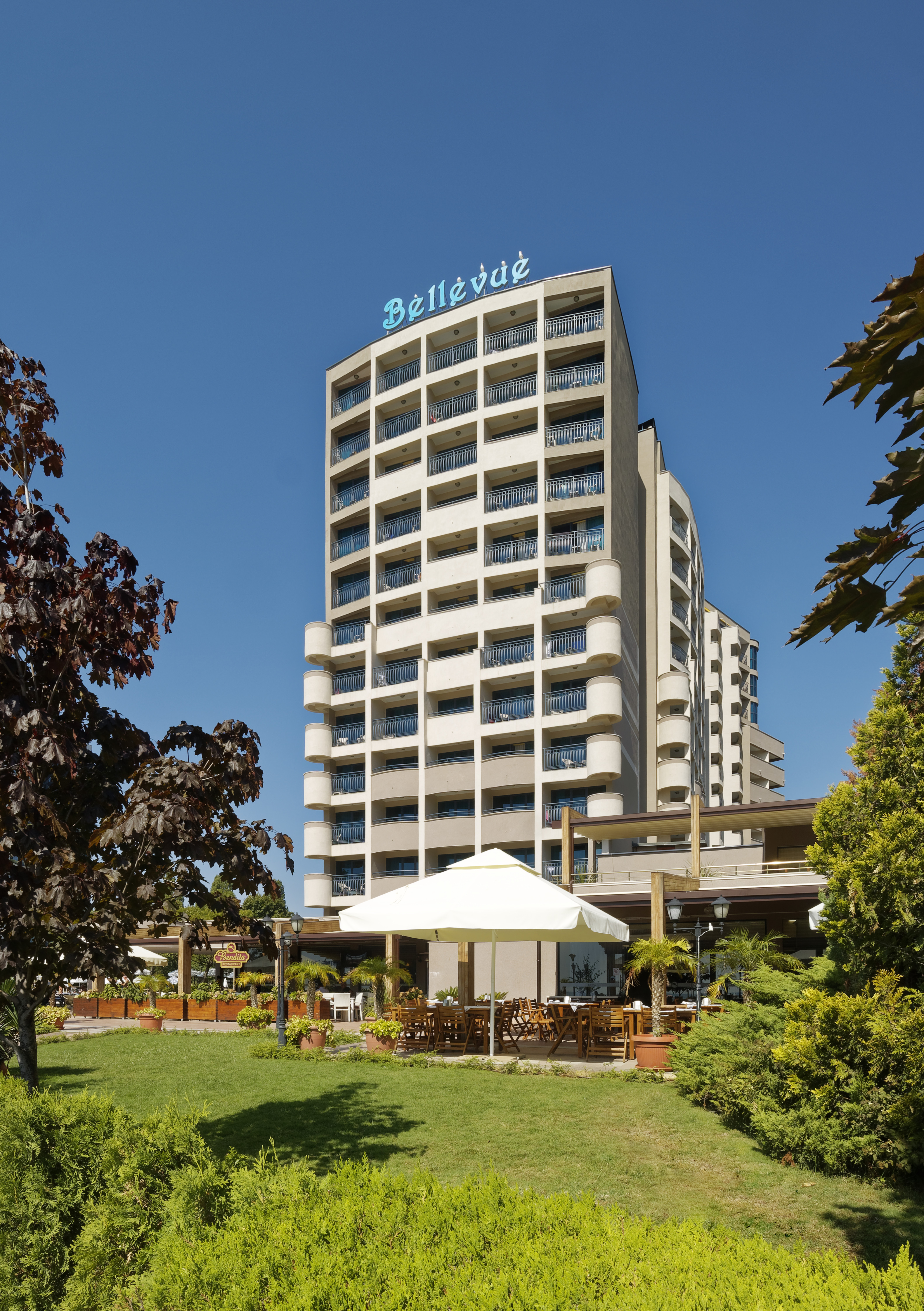 Das Bellevue ist ein großartiges Club Resort direkt am Meer im touristischen Zentrum von Sunny Beach. Die Gäste finden den Strand, zahlreiche Restaurants, Bars und Clubs sowie Geschäfte und Anbindungen an das öffentliche Verkehrsnetz nur einen Steinwurf vom Hotel entfernt. Das Strandhotel ist etwa 2, 5 km vom Stadtzentrum und dem Busbahnhof entfernt. Dieses moderne Hotel bietet alle Arten von Gästezimmern, von Familienzimmern bis hin zu Suiten mit moderner Ausstattung und aktuellen Annehmlichkeiten, um einen tollen Aufenthalt zu garantieren. Es ist ideal für Familien und Paare.