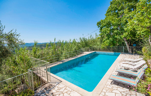 Diese Ferienwohnung mit Pool und Panoramablick in den Alpes-Maritimes befindet sich in einer ruhigen Gasse, 25 km von den Mittelmeerstränden entfernt, umgeben von Olivenbäumen und friedlicher Natur.
