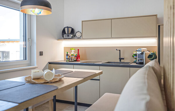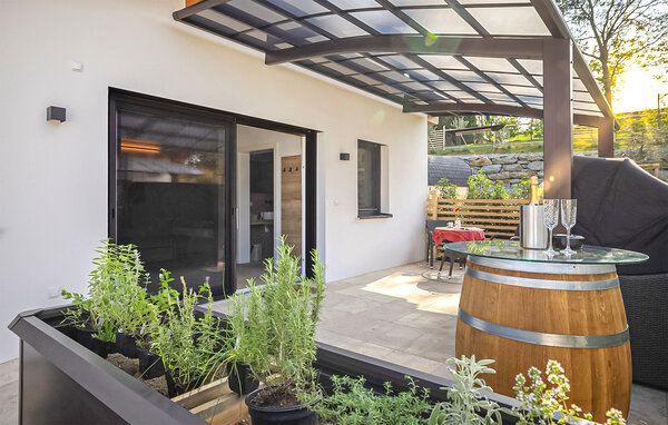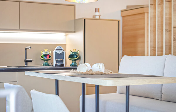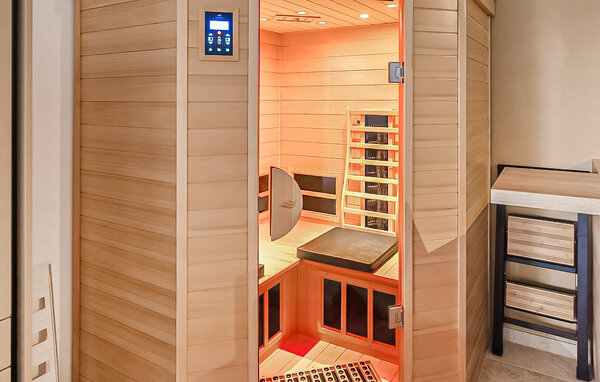 Lassen Sie den Alltag hinter sich und genießen Sie erholsame Tage zu zweit in diesem komfortablen Haus. Treten Sie ein in ein geschmackvolles Wohnzimmer mit modernen Möbeln und ansprechenden Farben. Hier können Sie es sich nach Ihren Unternehmungen so richtig gemütlich machen. Genießen Sie die gemeinsamen Mahlzeiten am Esstisch, während Sie Pläne für den nächsten Tag schmieden und entspannen Sie in der Infrarot-Kabine.