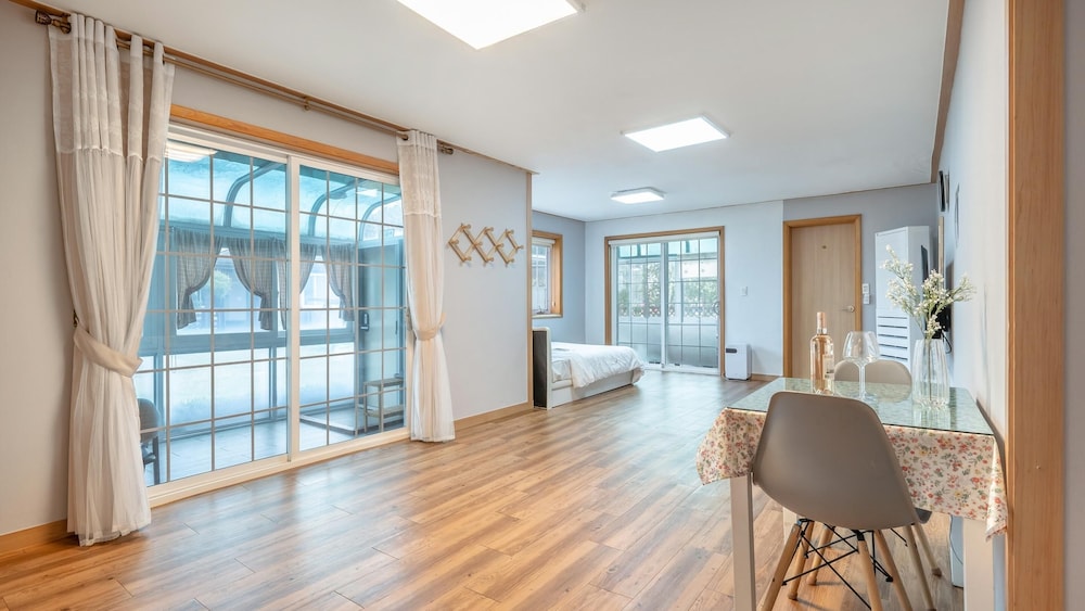 Taean Mongsanporangbadarang Shim Pension in Taean lockt mit einem Aufenthalt, der nur 5 Autominuten von Strand Mongsanpo und Kamille Farm entfernt ist. Diese Pension ist 2,5 km von Nationalpark TaeanHaean und 4,2 km von Orchid Town Arboretum entfernt. Fühl dich in einem der 11 Zimmer, die Kühlschrank und einen LCD-Fernseher bieten, wie zu Hause. Ein WLAN-Internetzugang (kostenlos) steht zur Verfügung. Badezimmer mit Badewannen oder Duschen sind vorhanden. Entfernungen werden bis auf 0,1 Kilometer gerundet.