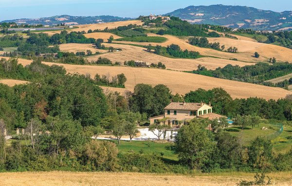 Dieses Ferienhaus mit privatem Pool, ein traditionelles Landhaus der Region Marche, liegt 3 Km von Mondavio entfernt mit Blick auf die malerischen umliegenden Hügel. Das komplett eingezäunte Anwesen besteht aus zwei separaten Wohneinheiten mit eigenem Eingang und verfügt über weitläufige Außenbereiche mit einem kleinen Wald, kleinen See mit Brücke, Privatpool, schattiger Terrasse mit Blick auf den Pool und für Mahlzeiten im Freien. In der Nähe des Pools stehen Ihnen außerdem ein Pavillon, Hängematten und schattige Bereiche zur Entspannung zur Verfügung. Das Haus ist in grüner Landschaft eingebettet, in Hügellage umgeben von Wäldern und Äckern mit wunderschönen Farben. Der Ort Barchi ist ein guter Ausgangspunkt für angenehme Spaziergänge auf dem Lande mit der Möglichkeit, Wildtiere wie Hirsche, Füchse und Wildschweine zu sehen. Die Naturparks von San Bartolo und Furlo sind leicht erreichbar, ebenso die wichtigsten künstlerischen Städte der Region wie Pesaro, Urbino, Fano, Senigallia. Sehenswert sind die Einsiedeleien von Monte Giove, in der Nähe von Fano, San Vincenzo al Furlo und Fonte Avellana. Das Landhaus besteht aus zwei Einheiten. Im Haupthaus: Wohnzimmer, große Küche, Schlafzimmer für vier Personen ( zwei Doppelbetten, eines davon auf dem Hängeboden), Zweibettzimmer, zwei Bäder. Die zweite Wohneinheit besteht aus Wohnzimmer, Küche, zwei Schlafzimmern, eines davon mit Etagenbett, zwei Bädern. Das Anwesen erreichen Sie über eine kurze, nicht asphaltierte Zufahrtsstraße.