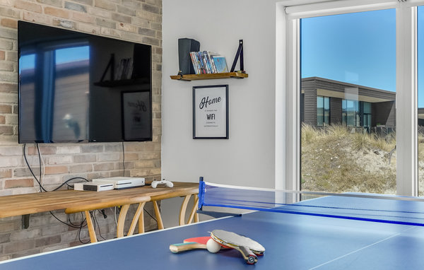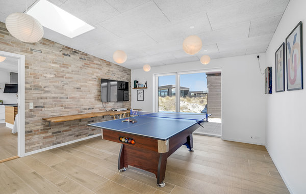 Kommen Sie mit Ihren Freunden, der ganzen Familie oder befreundeten Familien nach Vorupør, wo Sie dieses großartige Ferienhaus vorfinden. Hier wird es Ihnen an nichts fehlen. Die vollständige Innenausstattung sorgt für höchsten Komfort. Speisen Sie gemeinsam an der großen Tafel neben der Küche oder vergnügen Sie sich in den Freizeiträumen mit Tischtennis und Billard. Die Kinder können sich draußen im Garten an den Spielgeräten austoben, während sich die Erwachsenen entspannt auf der Terrasse sonnen. Nach erlebnisreichen Tagen entspannen Sie sich in der hauseigenen Sauna oder im Außen-Whirlpool und lassen den Tag gemütlich mit einem Glas Wein oder einem leckeren Bierchen ausklingen.