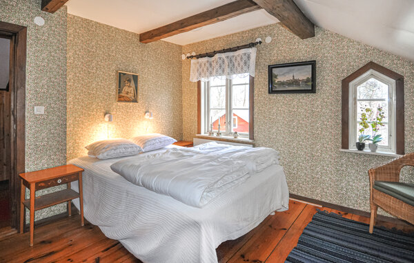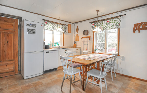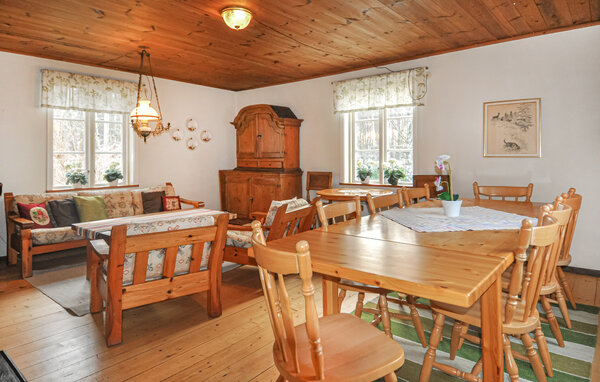 Freuen Sie sich auf einen erholsamen Urlaub in diesem charmanten Schweden-Ferienhaus nahe Lilla Mosstorp. Eingebettet in eine malerische ländliche Umgebung bietet dieses Haus eine schöne Mischung aus traditionellem Charme und modernen Annehmlichkeiten. Entspannen Sie sich im geräumigen Wohnzimmer mit seinen zahlreichen gemütlichen Sitzgelegenheiten und dem rustikalen Kaminofen. Die Holzvertäfelung und die warmen Farben schaffen eine einladende Atmosphäre. Nutzen Sie den großzügigen Holzesstisch, um Mahlzeiten zusammen mit der Familie oder mit Freunden zu genießen.