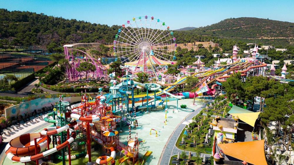 Vogue Hotel Supreme Bodrum in Bodrum liegt am Meer, nur eine 15-minütige Fahrt von Fährhafen von Bodrum und Kastell von St. Peter entfernt. Dieses Hotel in Strandnähe ist 7,5 km von Strand von Bodrum und 9,6 km von Bodrum Marina entfernt. Fühl dich in einem der 782 klimatisierten Zimmer mit kostenlose Minibar und LCD-Fernseher wie zu Hause. Ein WLAN-Internetzugang (kostenlos) ist ebenso verfügbar wie Satellitenempfang. Die Badezimmer bieten Duschen, kostenlose Toilettenartikel und Bidets. Zur Austattung gehören Safes und Wasserkocher; die Zimmer werden täglich sauber gemacht. Entfernungen werden bis auf 0,1 Kilometer gerundet.