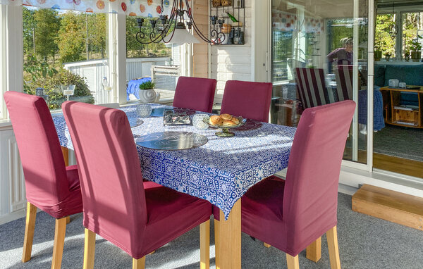 Verbringen Sie einen entspannten Urlaub in diesem gemütlichen Ferienhaus in der malerischen Gemeinde Tranås. Dieses charmante Haus bietet Ihnen eine ruhige Rückzugsmöglichkeit mit zahlreichen Annehmlichkeiten, die für Erholung und Unterhaltung sorgen. Beginnen Sie den Tag auf der großzügigen Terrasse, die zum Frühstücken im Freien einlädt. Der Esstisch und die bequemen Sitzgelegenheiten machen sie zum idealen Ort für gesellige Stunden unter freiem Himmel.