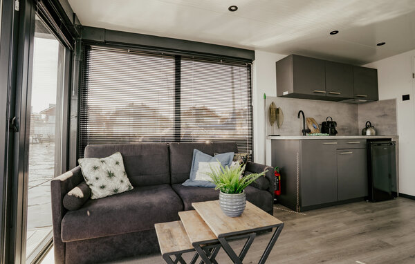 Genießen Sie einen erholsamen Aufenthalt in diesem modernen und einladenden Hausboot. Dank bodentiefer Panoramafenster genießen Sie aus dem Wohnraum einen fantastischen Blick auf das Wasser. Kommen Sie im Wohnbereich zusammen, kochen, essen oder relaxen auf dem Sofa. Finden Sie Nachtruhe in den gemütlichen Schlafzimmern, während Sie am Morgen das Frühstück im Freien einnehmen können.
