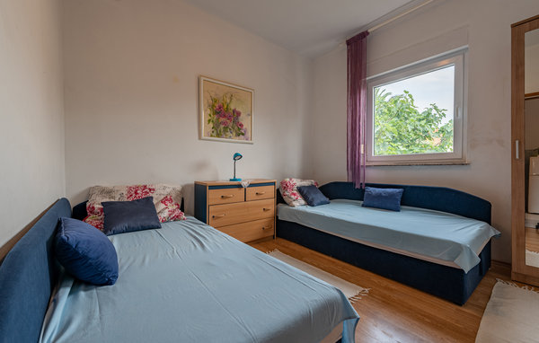 Diese einfach eingerichteten Ferienwohnungen befinden sich in einem Familienhaus, auf der Insel Vir. Sie bestehen aus Wohnküche, Bad und zwei Schlafzimmern. Auf dem gemeinsamen Grundstück steht allen Gästen ein Grill zur Verfügung. Hier wohnen Sie in attraktiver Lage, nahe des Stadtzentrums, schöner Kiesstrände, vieler Sommerveranstaltungen, sowie zahlreicher Bars und Restaurants. Besuchen Sie die kleine Stadt Nin, die neben ihrem Altstadtkern auch für ihren Heilschlamm am Königinnenstrand bekannt ist und besichtigen Sie die Sehenswürdigkeiten der Stadt Zadar. Die letzten ca. 10 m zum Domizil führen über eine nicht asphaltierte Straße.