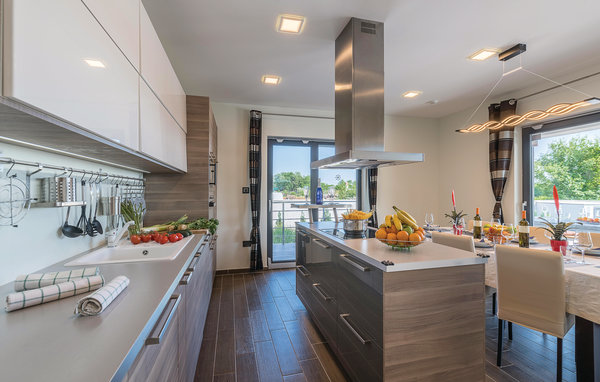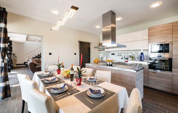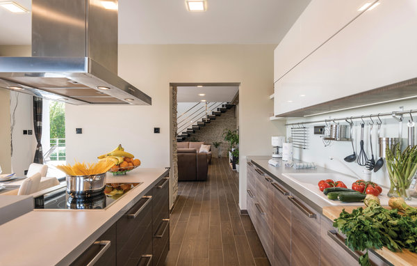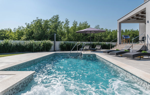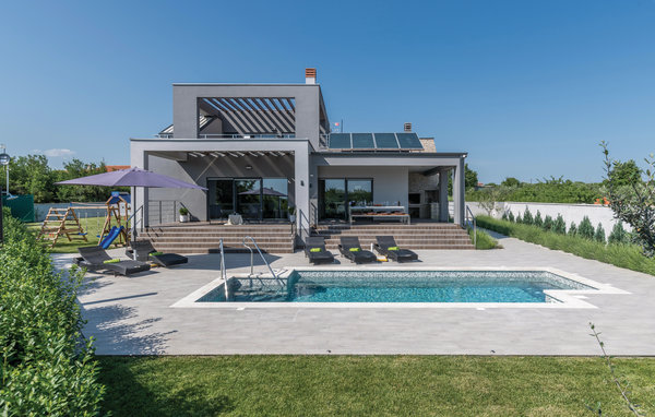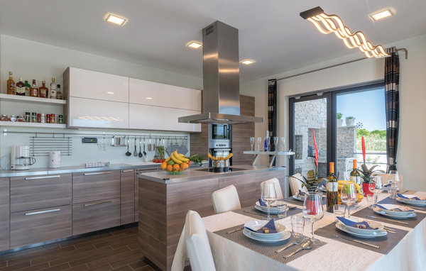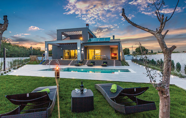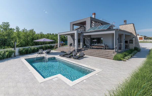 In Galižana, nicht weit entfernt von der Stadt Pula, befindet sich dieses moderne Ferienhaus. Große Fenster zeichnen dieses Feriendomizil aus und sorgen für ein helles und freundliches Interieur, das mit geschmackvoller Einrichtung für hohen Komfort sorgt. Die Schlafzimmer mit eigenen Badezimmern sorgen für Privatsphäre. Die Dachterrasse kann nicht benutzt werden. Im zur Verfügung stehenden Whirlpool können Sie entspannen und sich hinterher im Pool erfrischen. Wir empfehlen Ihnen die Altstadt von Pula zu entdecken. Die Stadt Pula bietet während der Sommermonate eine Menge Veranstaltungen, die für Unterhaltung sorgen. Ebenso beliebt als Ausflugsziel sind die Brijuni Inseln, die ein Nationalpark sind und Ihnen einen unvergesslichen Tag umgeben von unberührter Natur garantieren.