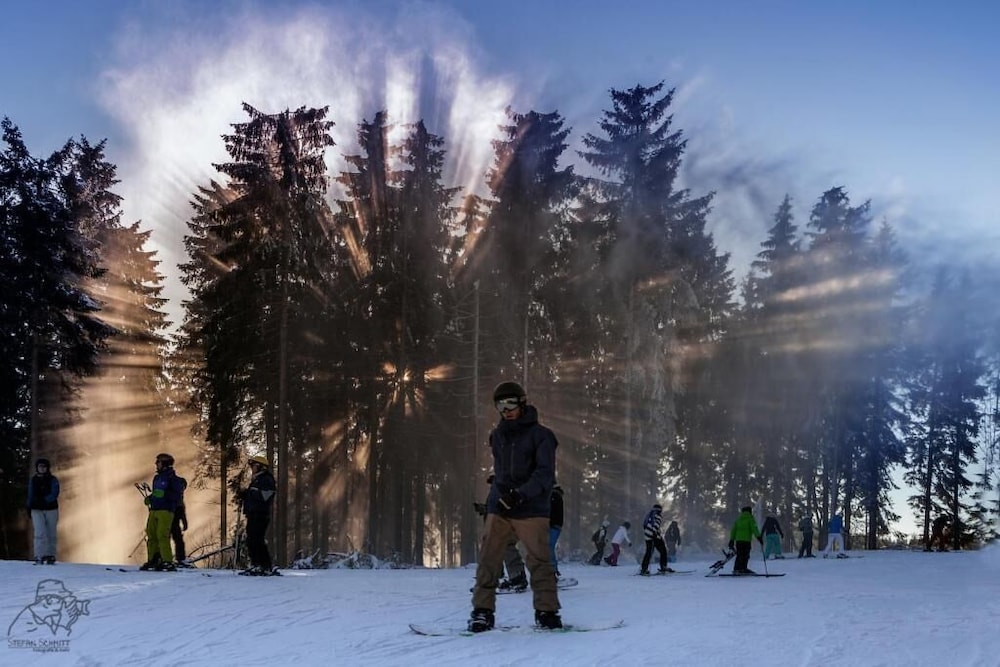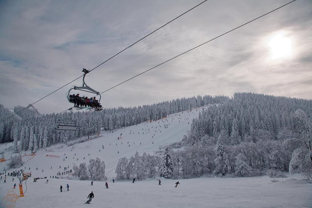 Piste und Pedale - Deine Bude - Dein Abenteuer (2 min zu Fuß am Bikepark, 2 min zum Skilift) in Winterberg liegt in ländlicher Umgebung, nur 5 Gehminuten von Skiliftkarussell Winterberg und Bikepark Winterberg entfernt. Diese Wohnanlage mit Ferienwohnungen direktem Zugang zum Skigebiet ist 0,2 km von Erlebniswelt Winterberg und 1,9 km von Skilift Poppenberg 1 entfernt. Fühl dich in einem der 8 Zimmer, die Küchen bieten, die über Kühlschränke und Mikrowellen verfügen, wie zu Hause. Ein WLAN-Internetzugang (kostenlos) steht zur Verfügung. Entfernungen werden bis auf 0,1 Kilometer gerundet.