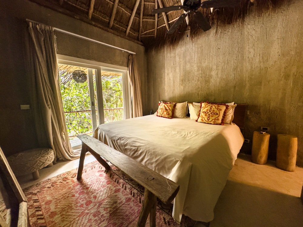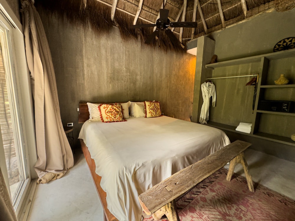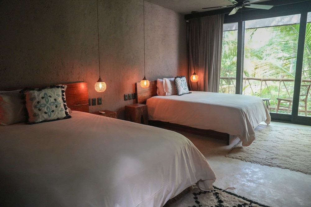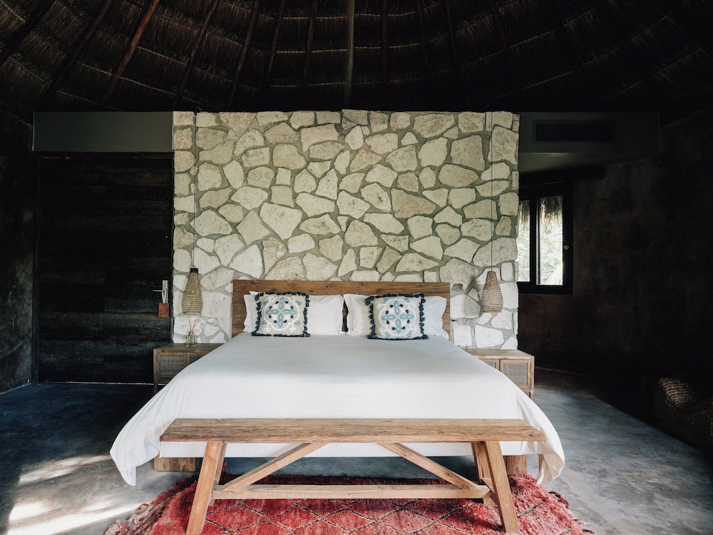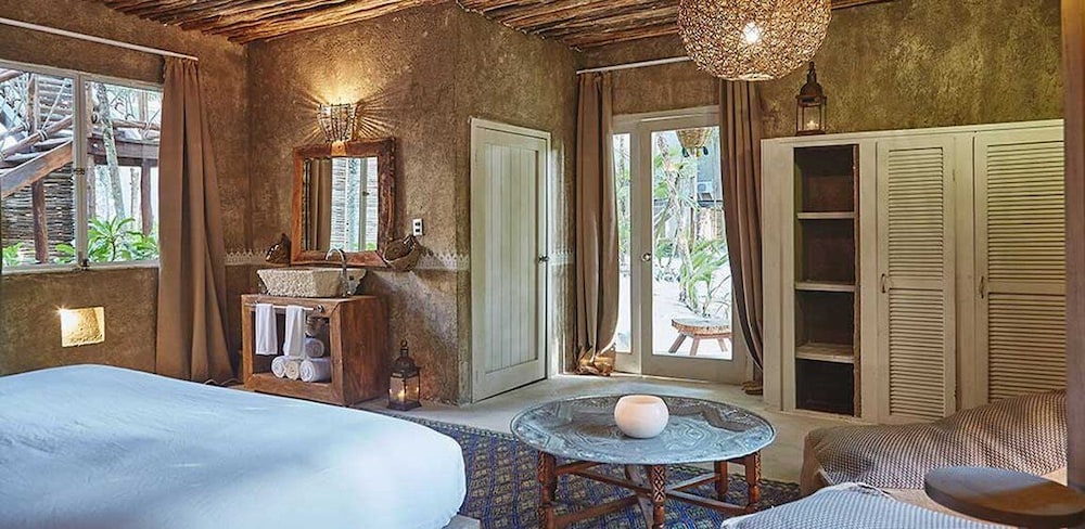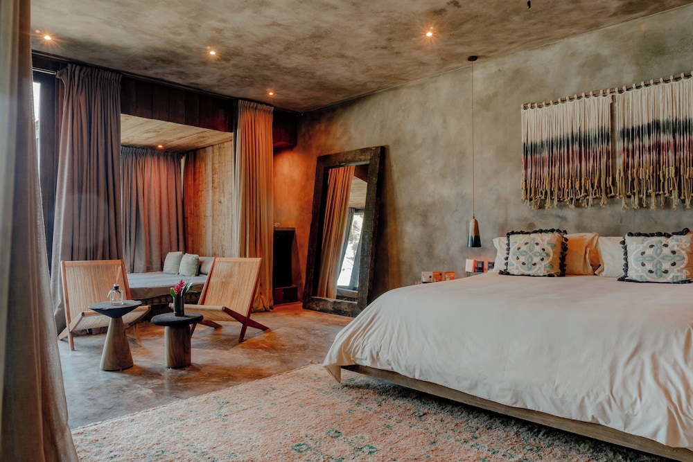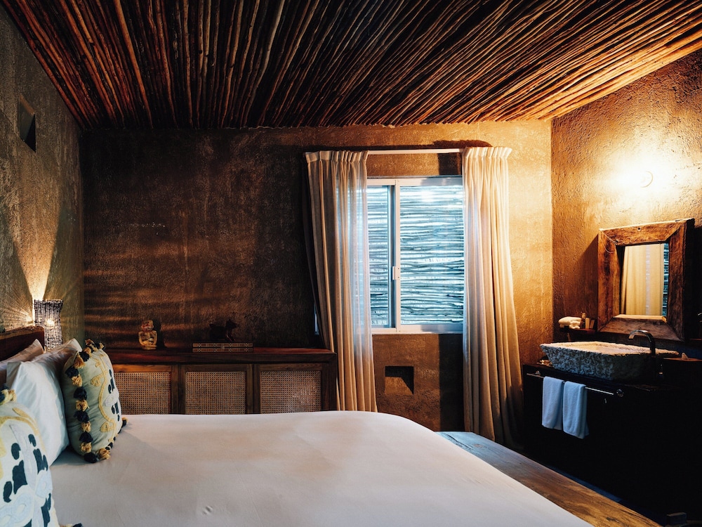 Nômade Temple Tulum in Tulum (Zona Hotelera) ist nur wenige Schritte von Strand von Tulum und 12 Gehminuten Biosphärenreservat Sian Ka'an entfernt. Diese Lodge in Strandnähe ist 11,9 km von Maya-Ruinen von Tulum und 8,4 km von Playa Paraiso entfernt. Mach es dir in einem der 68 Zimmer, die individuell ausgestattet sind, gemütlich. Die Zimmer haben eigene Balkone oder Patios. Ein WLAN-Internetzugang (kostenlos) steht zur Verfügung. Es sind eigene Badezimmer mit Duschen vorhanden, die über kostenlose Toilettenartikel und Haartrockner verfügen. Entfernungen werden bis auf 0,1 Kilometer gerundet.